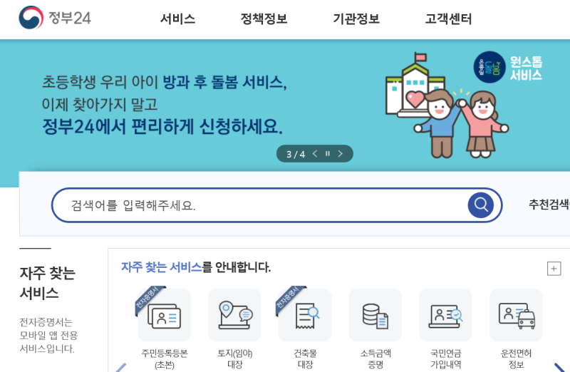 토지대장등본 발급 방법을 알아보면, 정부24사이트에 접속하여,