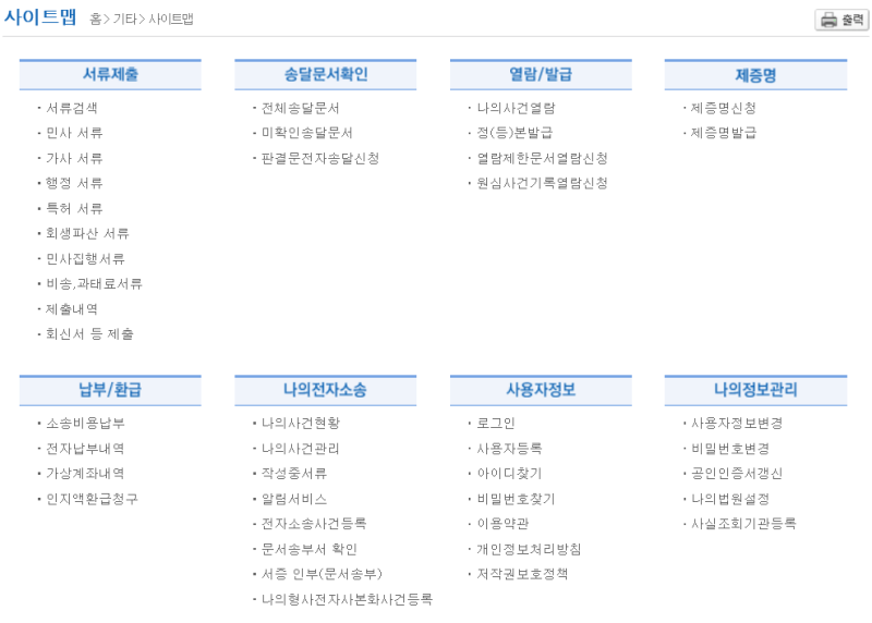 그리고 우측 상단의 "사이트맵"을 클릭하면, 아래와 같이 사이트맵이 나오는데,