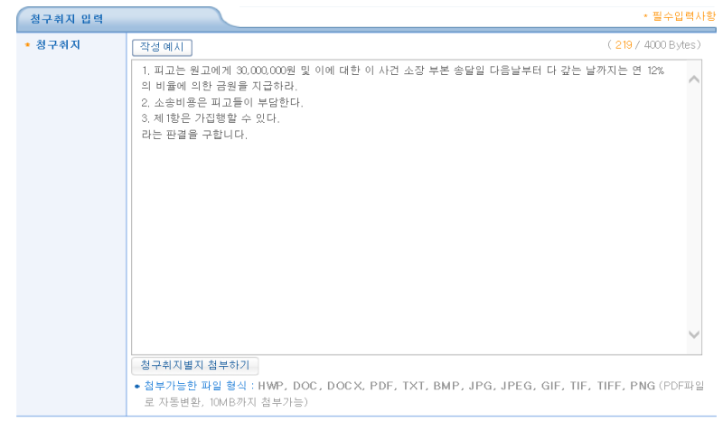 문서작성 3. 청구취지 입력
