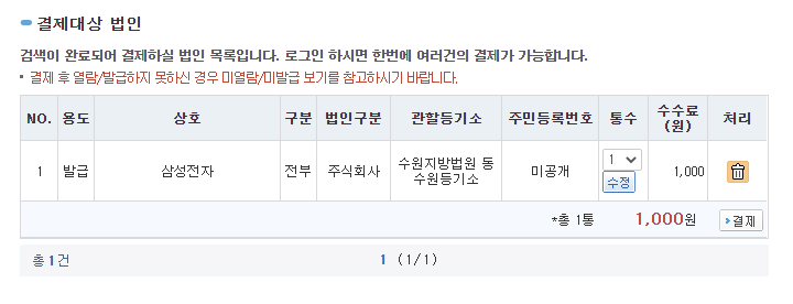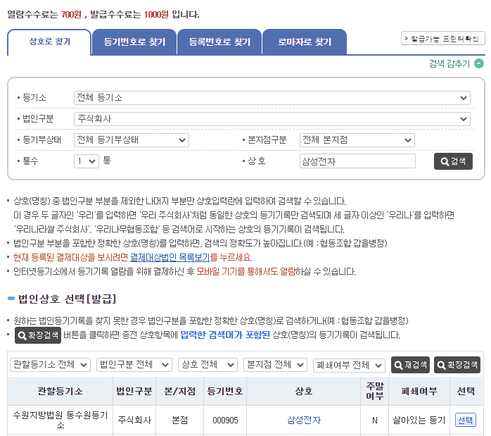 -상호로 '삼성전자' 입력 후 검색하면,