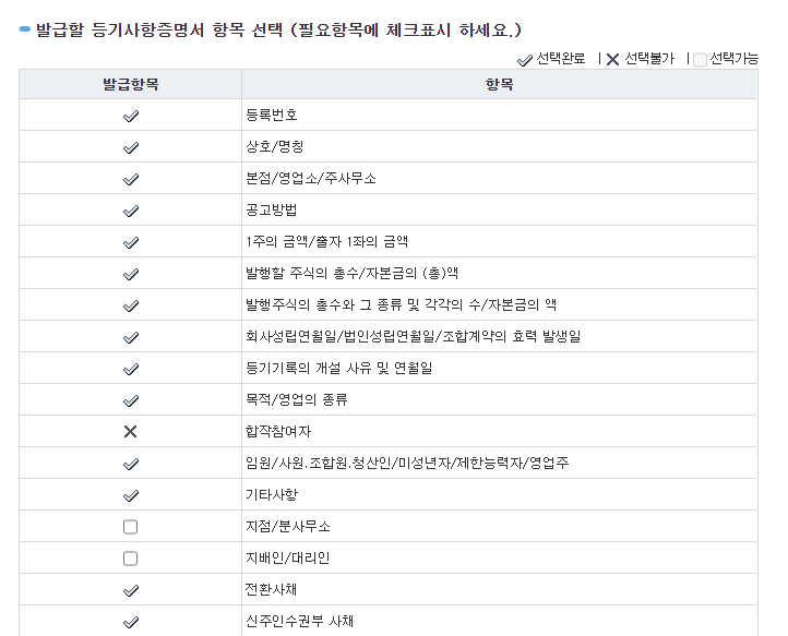 어차피 주소지, 대표자를 확인하고자 하는 것이므로, '지점/분사무소', '지배인/대리인'을 체크할 필요는 없고,