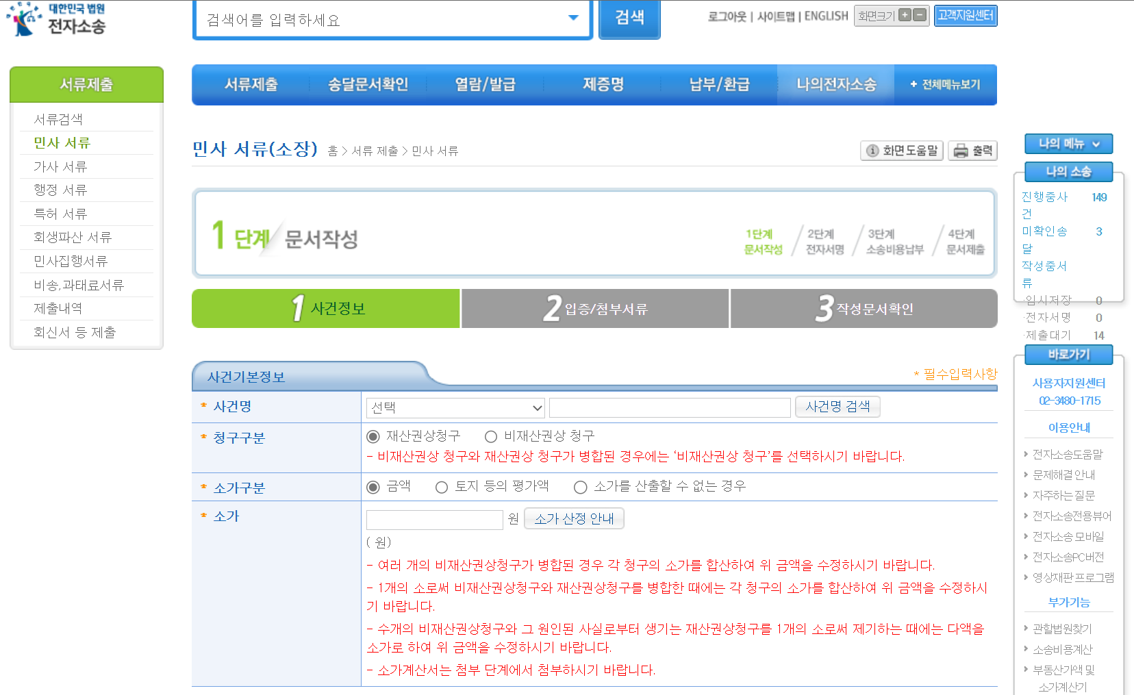 단지 관할법원을 온라인상으로 선택하면 됩니다. 참고로 재판(변론기일)이 열릴 때는 실제 관할법원에 참석하여야 합니다.