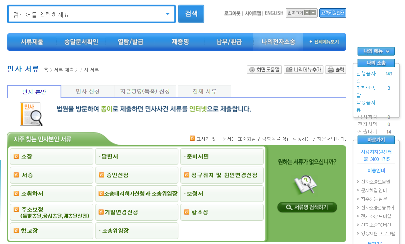 피고의 답변서도 전자소송사이트에서 접수할 수 있습니다.