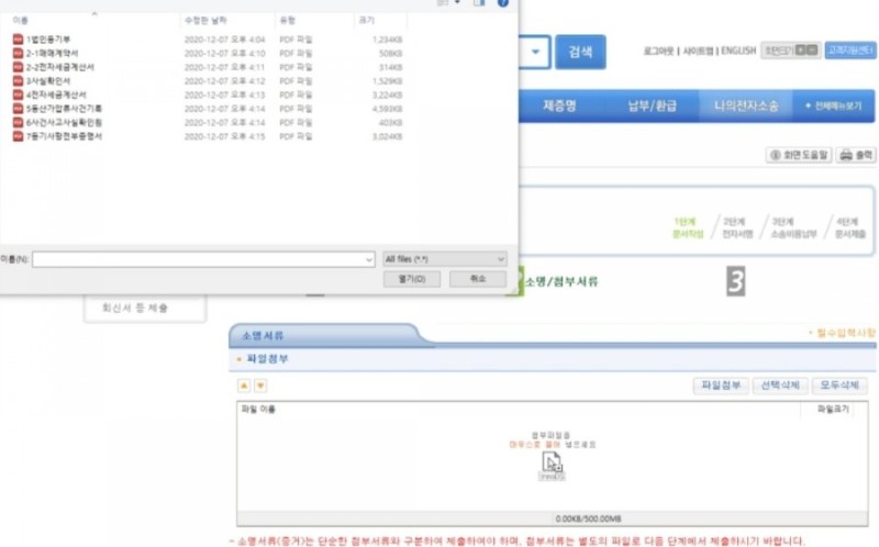 8. 저장 후 다음 버튼 클릭하여 소명자료, 첨부자료 첨부하기.
