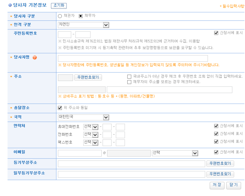 (소재지 법원이 어디인지는 "관할법원찾기"를 클릭하여 주소로 검색)