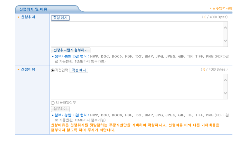 신청취지는 신청에 대하여 원하는 결론을 기재하는 곳인데, 기재례가 정해져 있음