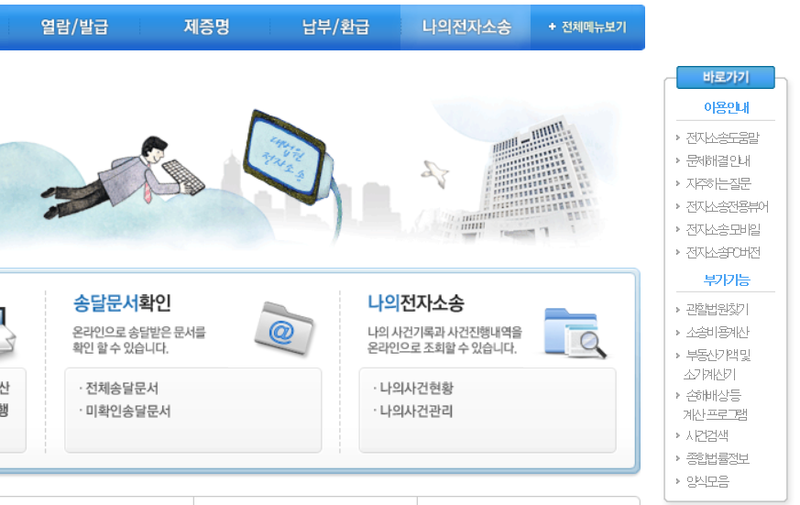 2. 대한민국 법원 전자소송에 접속 후 우측 바로가기 배너를 봅니다.