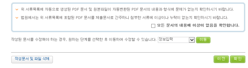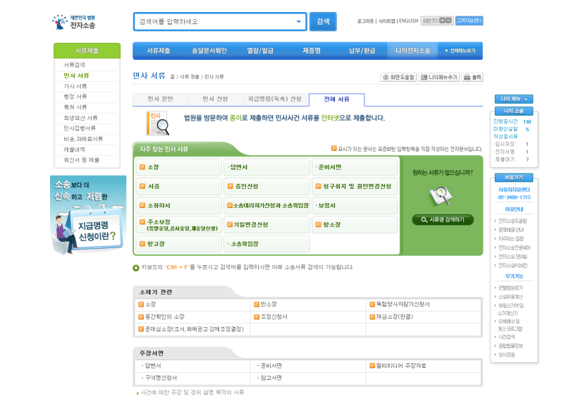 위 화면은 로그인 첫 화면에서 서류제출>>민사서류 로 접속한 모습니다.