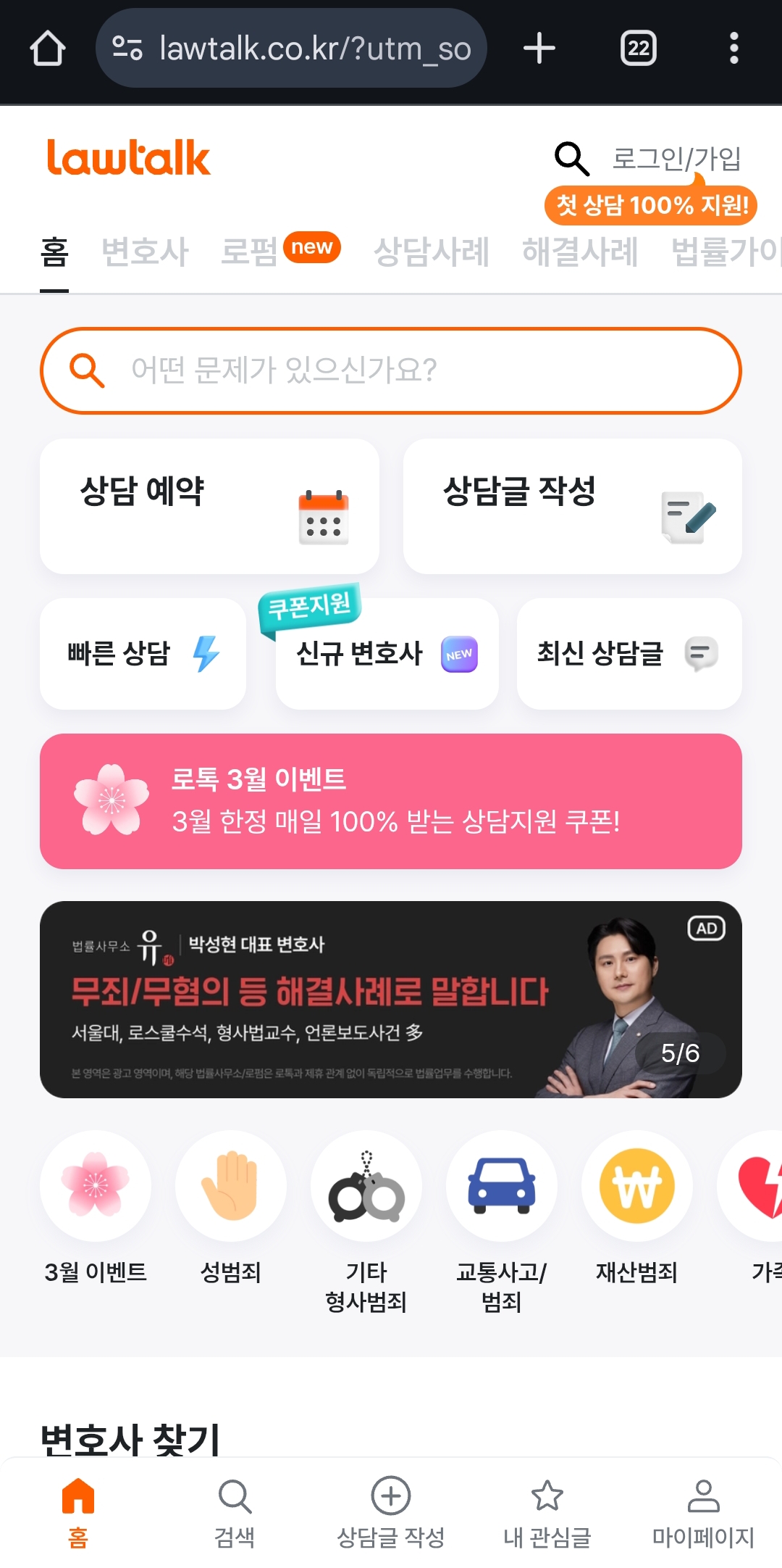 첫 번째로 소개할 법률 상담 플랫폼은 로톡입니다.
