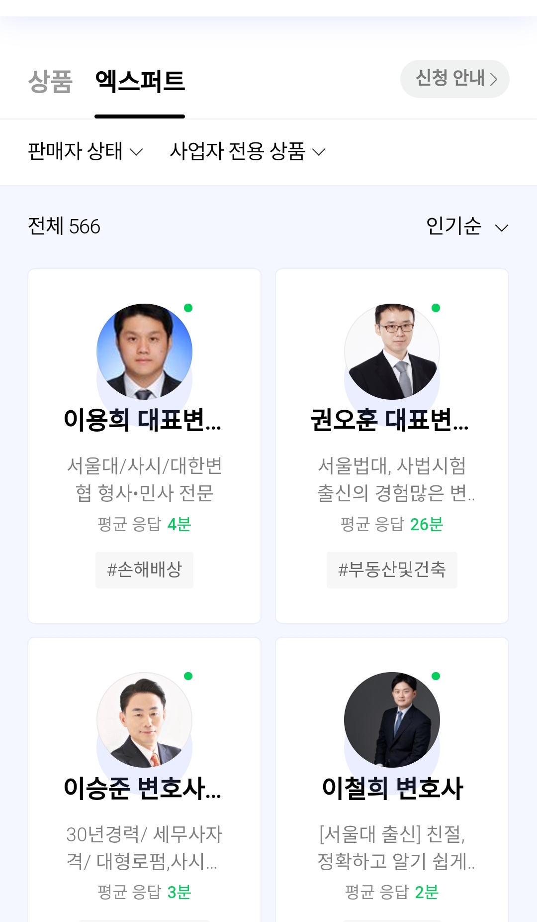 네이버 엑스퍼트도 로톡과 크게 다르지 않습니다.