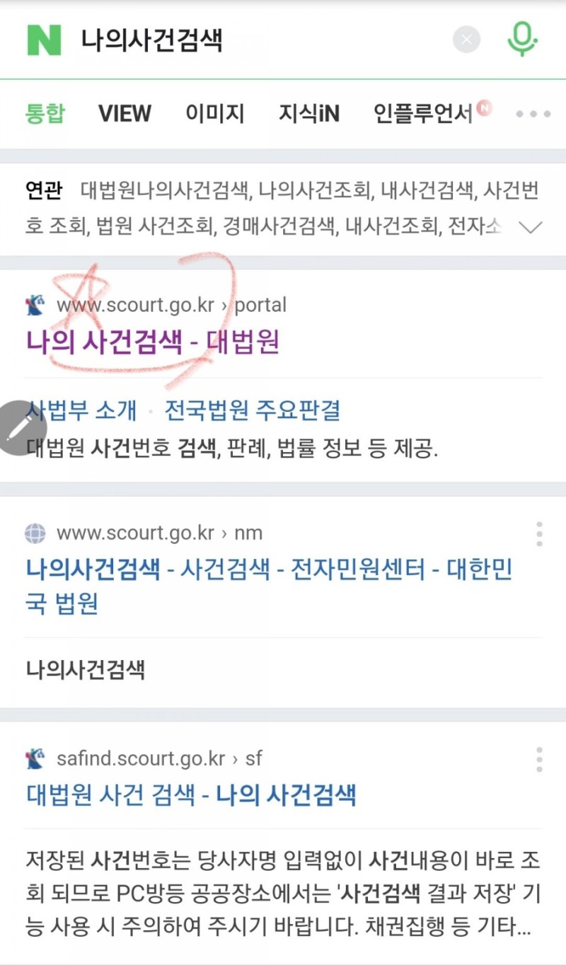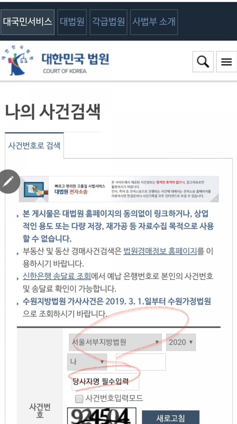 나의사건검색은 법원에서 마련해 둔 사이트인데,