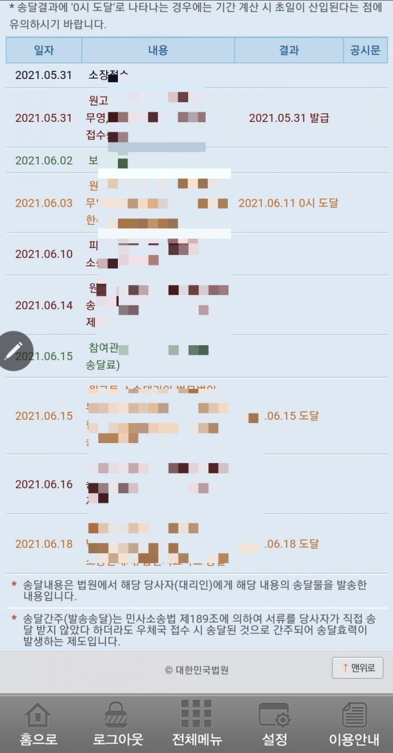 검색을 누르면 사건진행상황이 나옵니다.